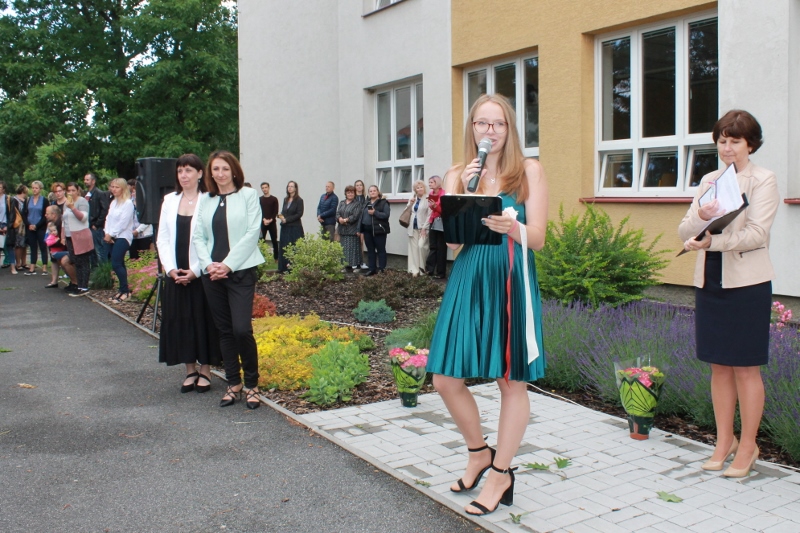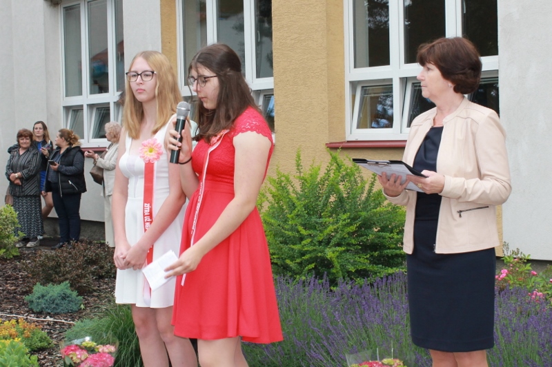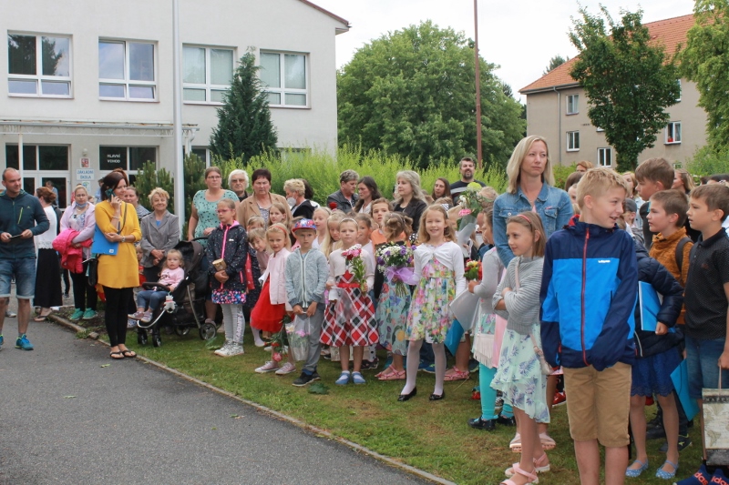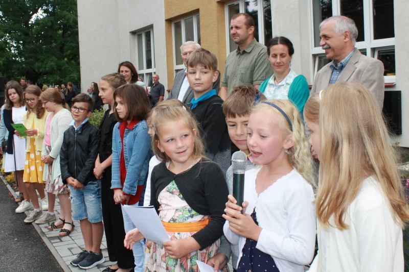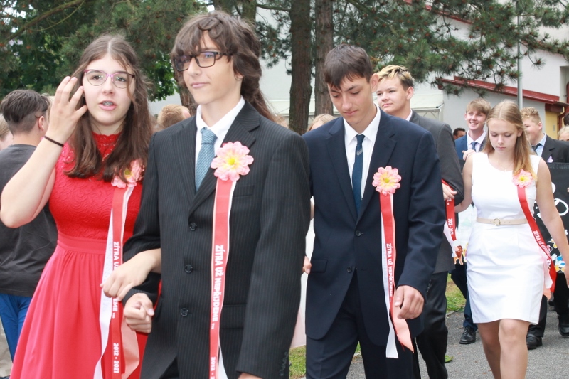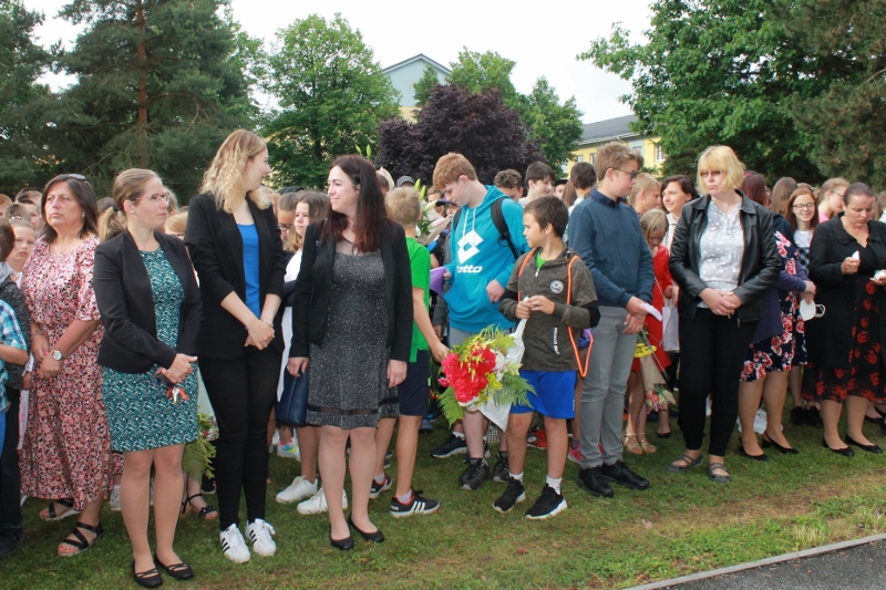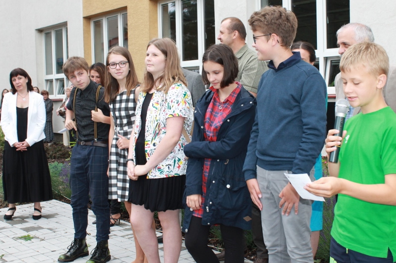 Před budovou rožmitálské základní školy se konalo ve středu 30. června slavnostní ukončení školního roku.