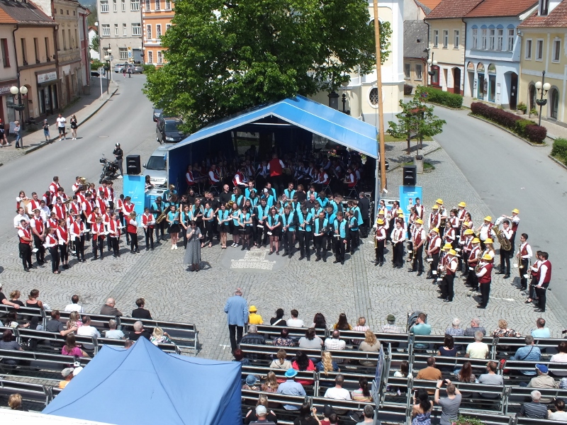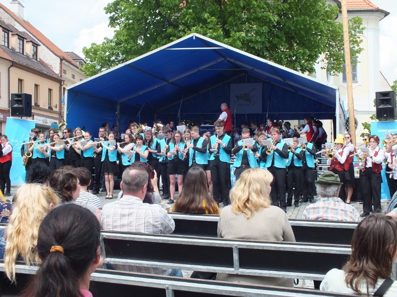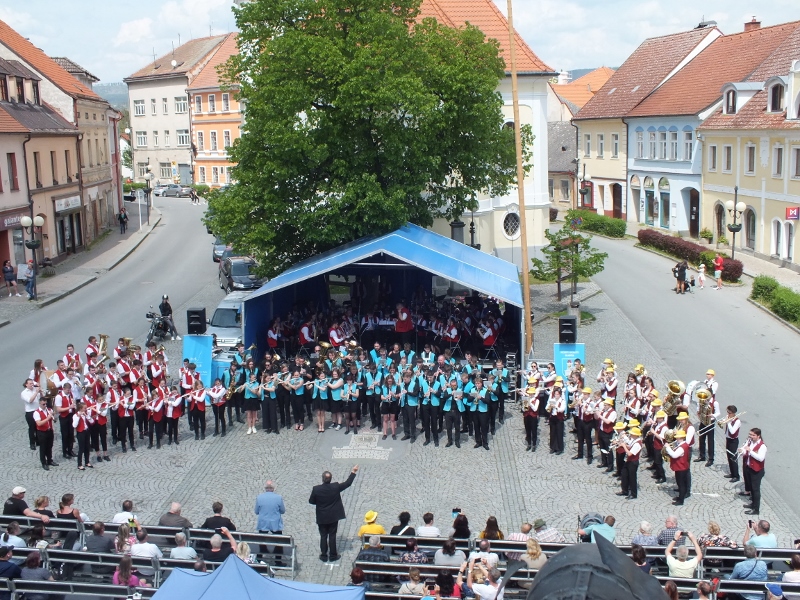 Na náměstí v Rožmitále pod Třemšínem se konal v neděli 21. května pětatřicátý ročník Festivalu dechových orchestrů a mažoretek. Jedním ze zlatých hřebů bohatého programu bylo společné vystoupení všech orchestrů.